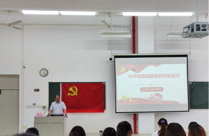 陈伟斌书记以“中华民族站起来的历史启示”为主题,通过丰富详实的史料回顾了中国共产党的产生发展历史背景,重温了中国共产党自1921年成立至今带领中国人民所经历的100年艰苦卓绝的奋斗历程,总结了中华民族站起来、富起来、强起来的历史启示:一是没有共产党就没有新中国;二是必须坚持以人民为中心的发展思想;三是坚持马克思主义与中国具体实际相结合;四是勇于面对任何困境、战胜任何困难;五是树立核心意识,维护党中央的权威;六是善于总结经验、纠正错误,在实践中不断前进。陈伟斌书记指出,现在是最好的时候,勉励同学们加倍珍惜,将中华民族站起来的历史启示运用到学习和生活中,不辜负伟大的时代。