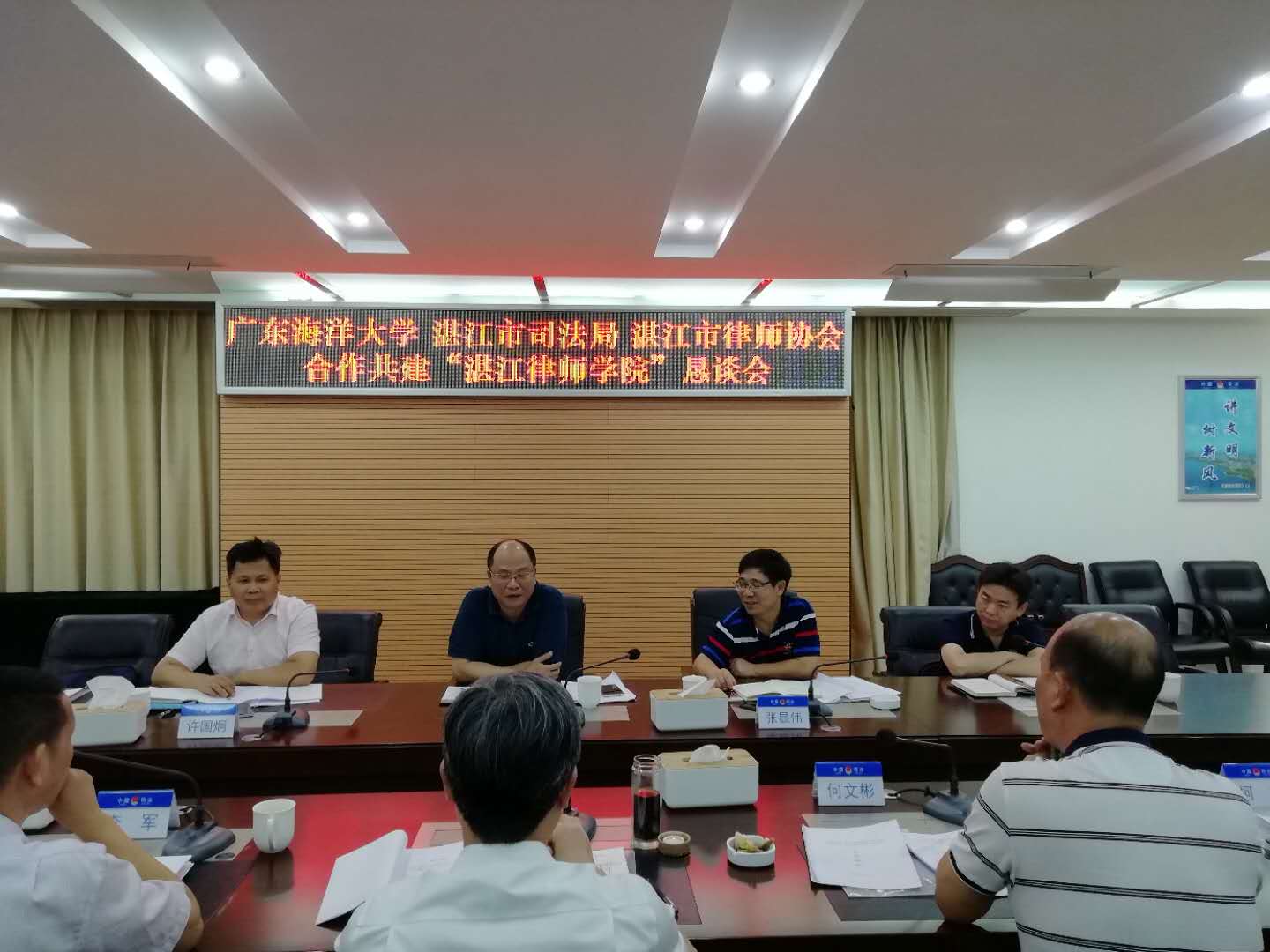 陈伟斌书记、张显伟院长、许国炯副书记、曹望华副院长等一行前往湛江司法局,与湛江市司法局、湛江市律师协会商谈合作共建“湛江律师新葡京app