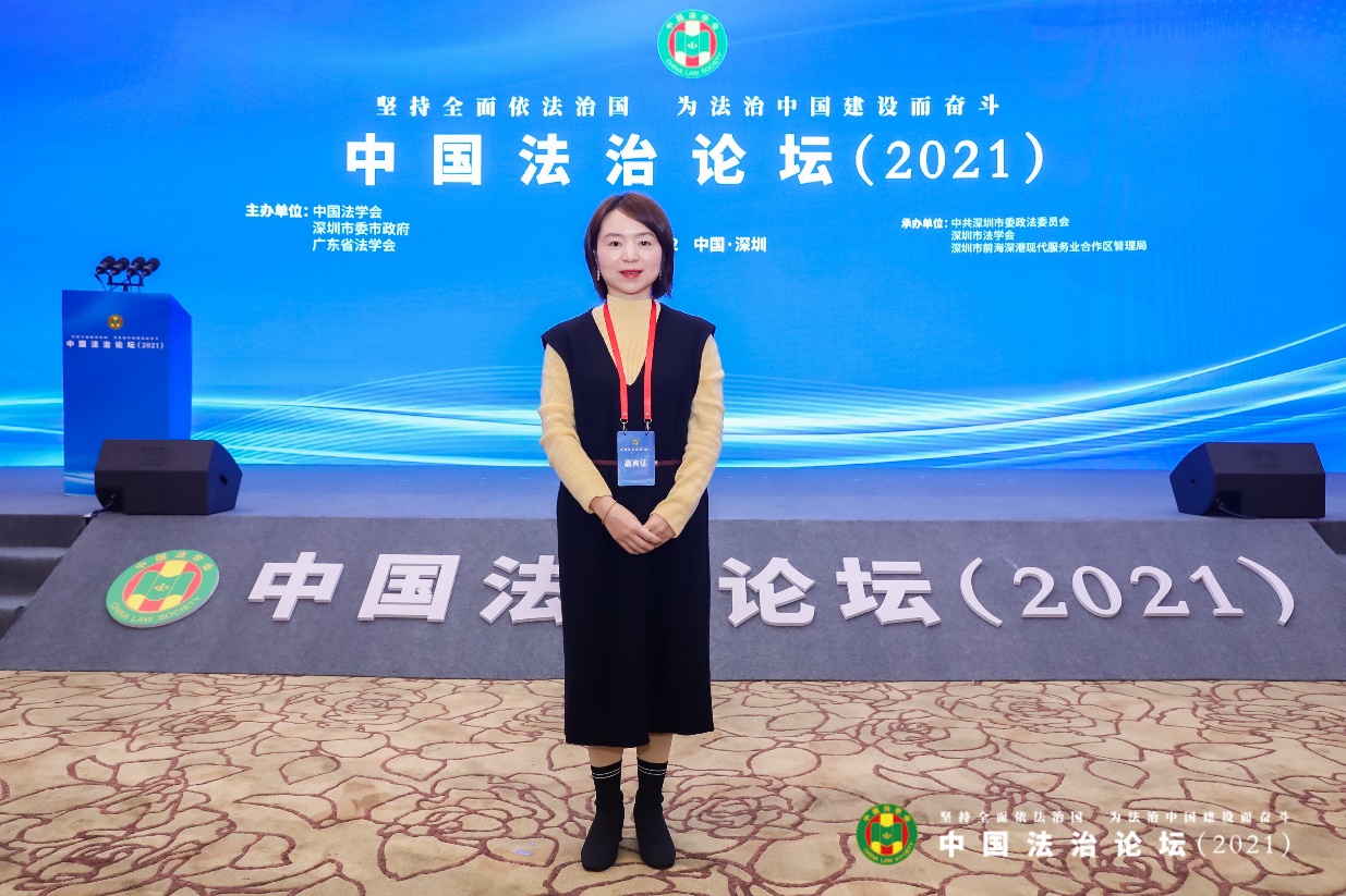 12月23日,我校新葡京app 副教授张艾妮应邀参加了在深圳举行的由中国法学会、深圳市委市政府、广东省法学会主办的中国法治论坛(2021)。论坛主题为“坚持全面依法治国 为法治中国建设而奋斗”。论坛紧扣法治中国建设实践需求,精心设置“法治中国建设背景下的粤港澳大湾区法治建设”“构建新发展格局的法治保障”和“建设法治先行示范城市的理论与实践”等三个单元共9个议题,邀请来自国内外近30名法治建设各领域著名专家学者,通过线上线下相结合方式深度参与交流。