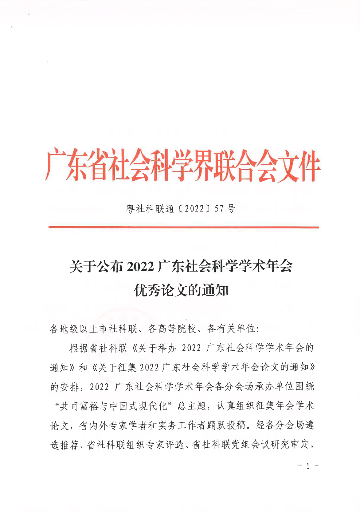 11月28日,广东省社会科学界联合会发布《关于公布2022广东社会科学学术年会优秀论文的通知》(粤社科联通〔2022〕57号)。新葡京app