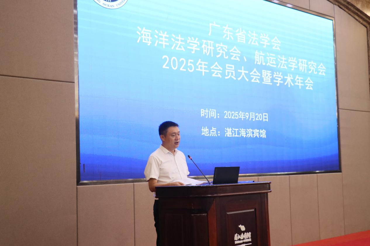 2025年9月20日,广东省法学会海洋法学研究会、航运法学研究会2025年会员大会暨学术年会在湛江海滨宾馆隆重召开。本次会议由广东省法学会海洋法学研究会、航运法学研究会联合主办,广东海洋大学承办,湛江市水产进出口企业协会协办,来自全省高校、研究机构、司法机关及律师事务所的180余名专家学者参会,围绕海洋经济法治保障与航运法律前沿问题展开深度研讨,为广东海洋强省建设提供智力支持。