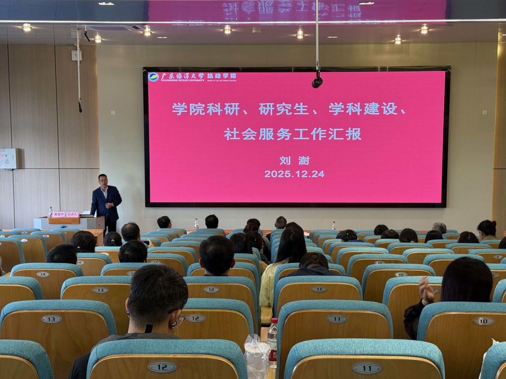 2025学年在教学地位巩固、教学运行管理、教研教改推进、创新创业教育及国际交流合作等方面所取得的进展与成效,通报了期中教学检查学校检查组的总体意见、主要优点及存在不足,明确了学期期末教务管理与考务组织相关工作要求,并对2026学年专业建设、智慧课程开发、实验室建设与运行管理等重点工作作出了初步部署。分管科研副院长刘澍围绕本学期核心任务展开深度总结,系统通报了各级各类科研项目结题验收情况、学术成果产出与转化成效、研究生教育教学培养、学科建设及人才引进和社会服务工作等方面;分析了新葡京app