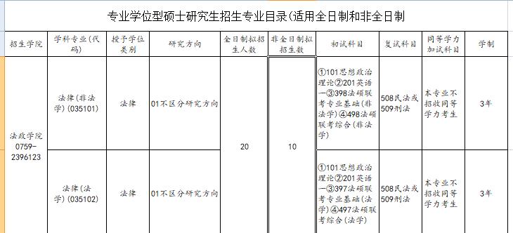 2)报考前所学专业为非法学专业(普通高等学校本科专业目录法学门类中的法学类专业[代码为0301]毕业生、专科层次法学类毕业生和自学考试形式的法学类毕业生等不得报考)