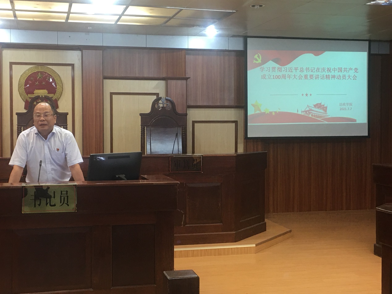 党委在湖光校区教学主楼模拟法庭召开了学习贯彻习近平总书记在庆祝中国共产党成立100周年大会上重要讲话精神教师、干部动员大会。会议由张显伟院长主持、陈伟斌书记作动员讲话,新葡京app