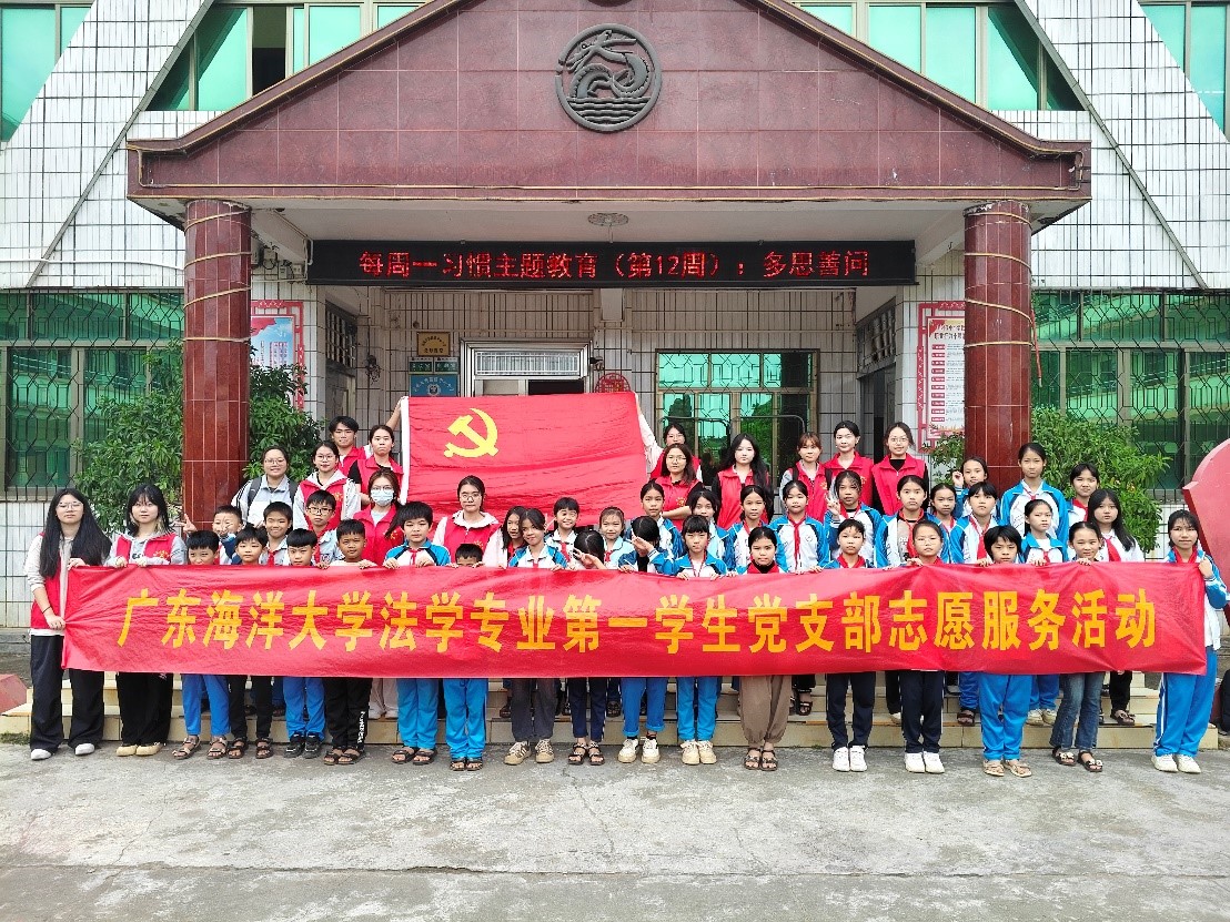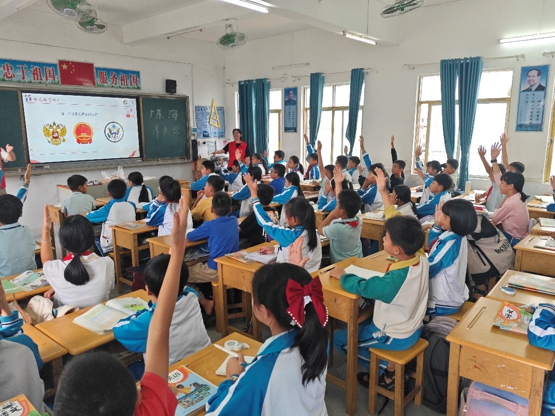 法学专业第一学生党支部47名师生,于11月20日下午走进湛江市雷州客路中心小学,开展了一场以“弘扬爱国主义精神,凝聚复兴磅礴力量”为主题的普法义教活动,约800名小学生参与本次活动。