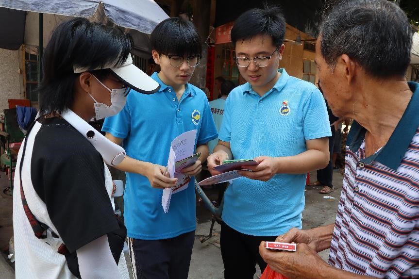 与此同时,团队成员分成三组小分队,在镇上沿路向路人发放调查问卷,并详细介绍国家资助政策的相关内容。这一举措不仅让“小星星队”深入了解了河头镇居民对国家资助和助学贷款的知晓程度,还让更多居民能够了解国家资助政策的具体情况,以便更好地让政策红利精准惠及到需要帮助的人群。在派发问卷的过程中,团队们耐心地向居民介绍国家资助政策,热情地协助有疑问的居民填写问卷,居民们从起初的不解转变为主动询问与政策相关的问题。天气炎热,有些热情好客的居民还将家中的黄皮果赠送给团队成员,这些经历都让成员们感受到了温暖,也愈发体会到了此次下乡宣传的意义所在。