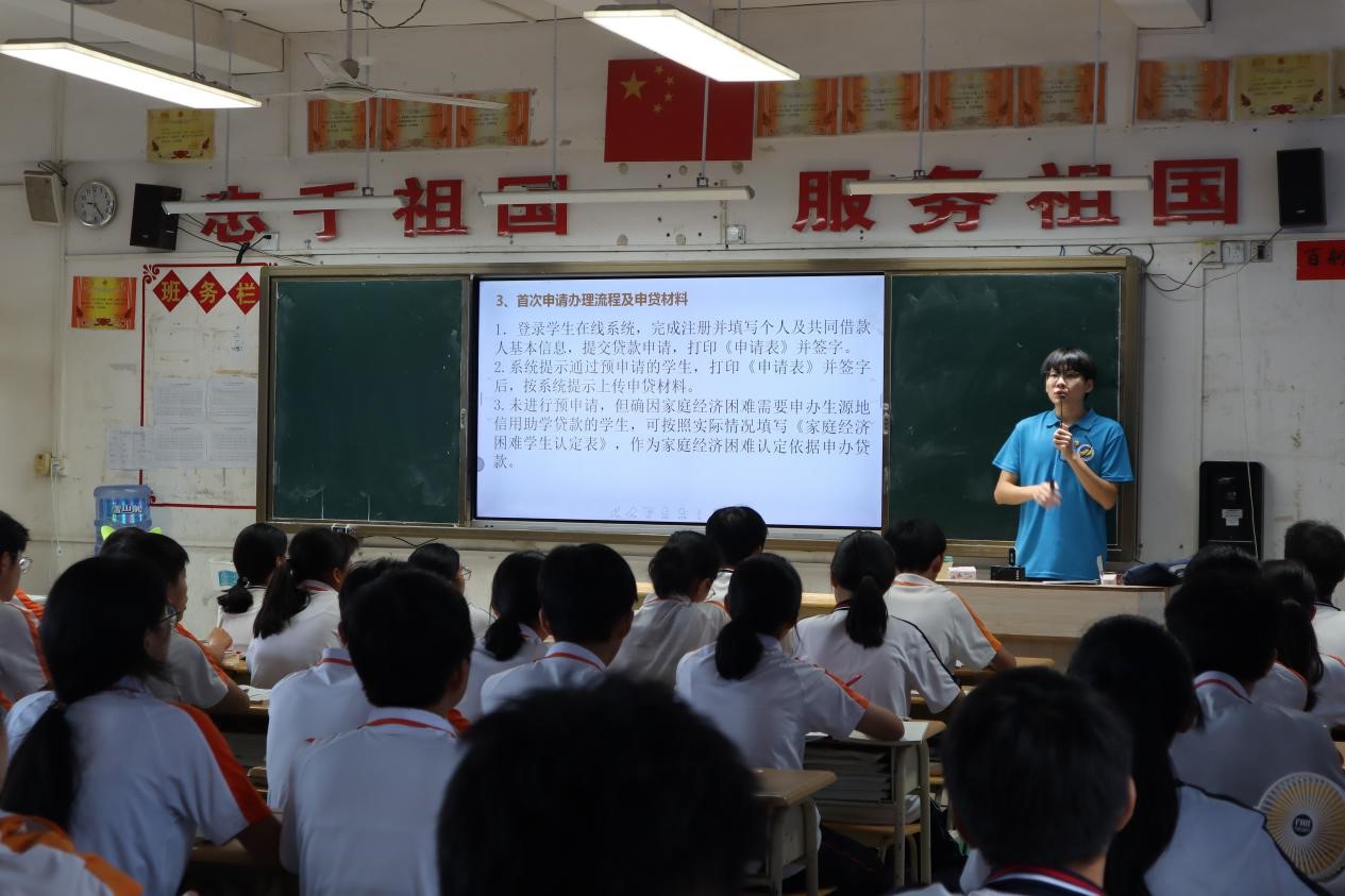 7月12日上午,“小星星队”前往河头中学,在河头中学郑培辉校长帮助和支持协助下,召集了部分学生开展了专场宣讲活动。团队队长向同学们详细介绍了包括国家奖学金、国家励志奖学金、国家助学金、生源地信用助学贷款以及勤工助学等资助政策,并对助学贷款的利息、申请条件和申请流程进行了讲解。此外,通过讲述其个人成长的经历来鼓励同学们在学习中要继往开来,向着人生的目标不断奋斗。同学们认真聆听,并表示对国家资助政策有了清晰的认识,同时对未来的学业和生活充满了信心,放心追逐大学梦。